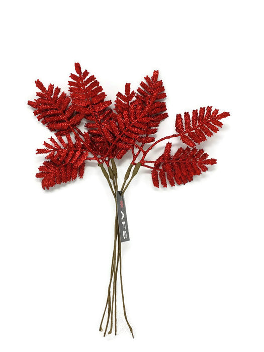 5 Stem Glitter Fern Bundle X 31cm Red Artificial Floral Supplies